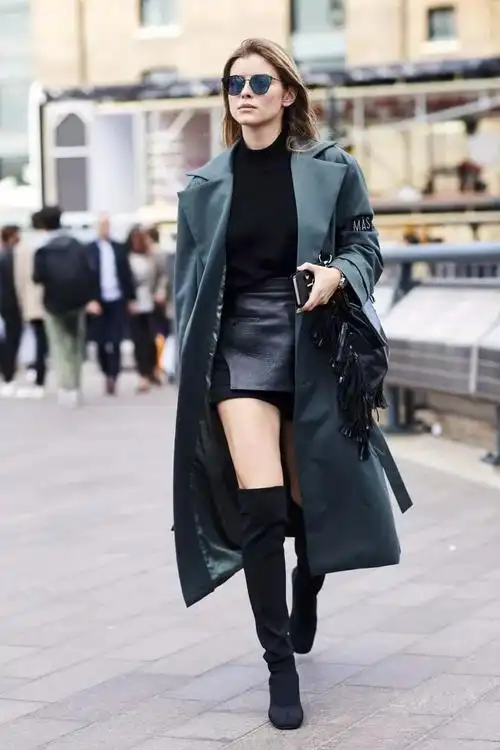 看街拍学搭配9组黑色及膝高筒靴高回头率穿搭示范
