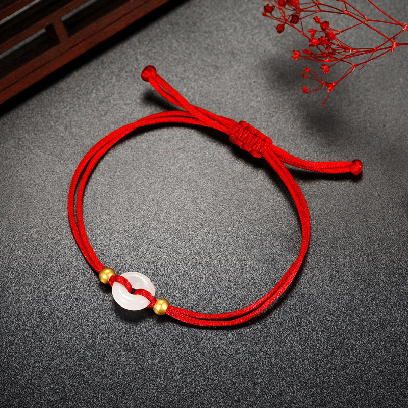 梦金园黄金转运珠平安扣玉手串红绳手链足金小金珠手饰情侣手链情人节