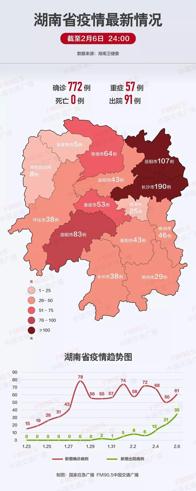 湖南治愈出院7例,新增57例!累计确诊病例全国排名第五!_长沙