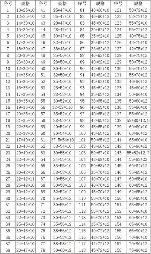 机械/仪表 tc骨架油封尺寸表 tc骨架油封尺寸表 序号(no)规格(size) 1