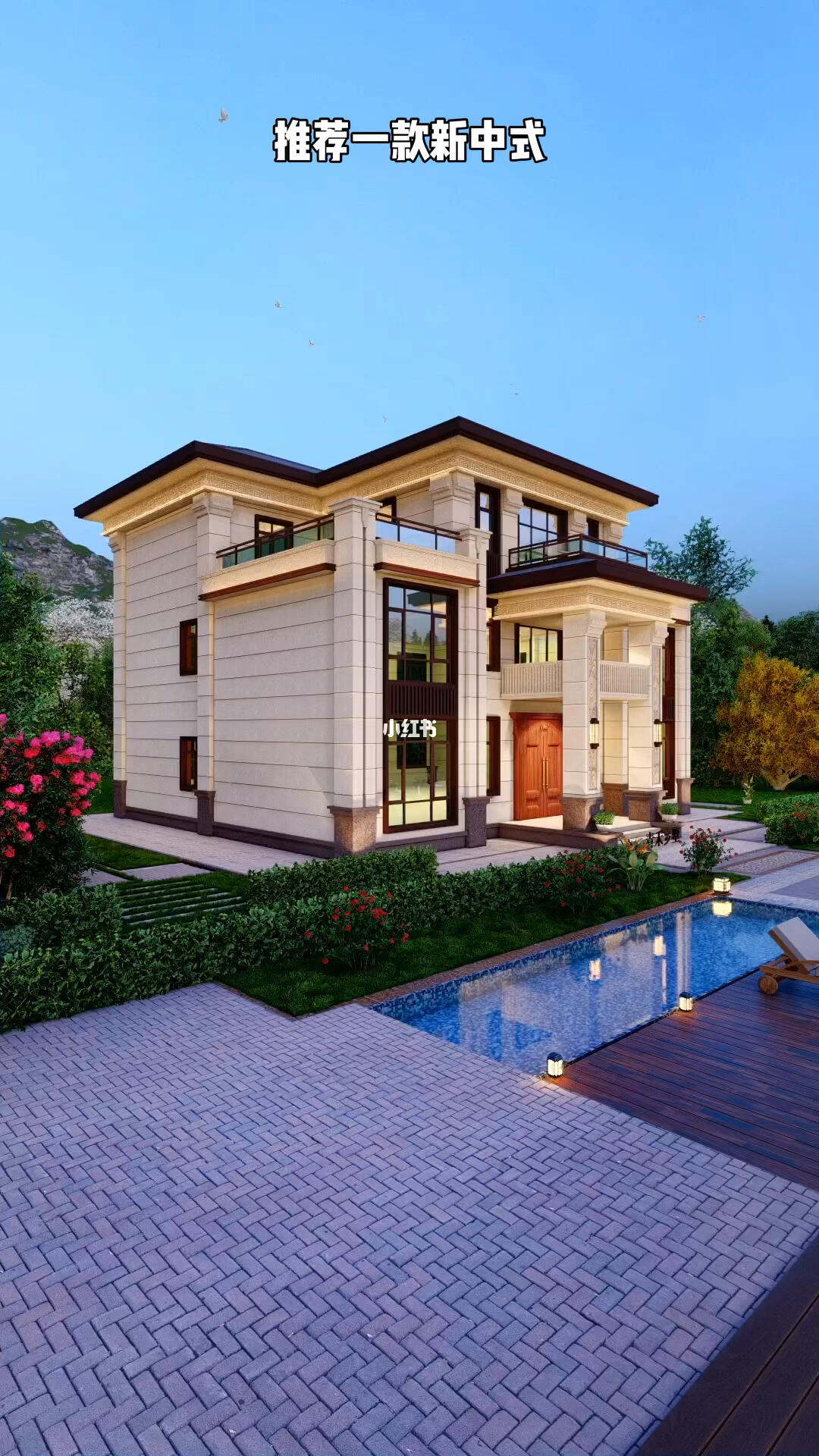 8×12.4新中式三层别墅,豪华气派带电梯,实用又大气