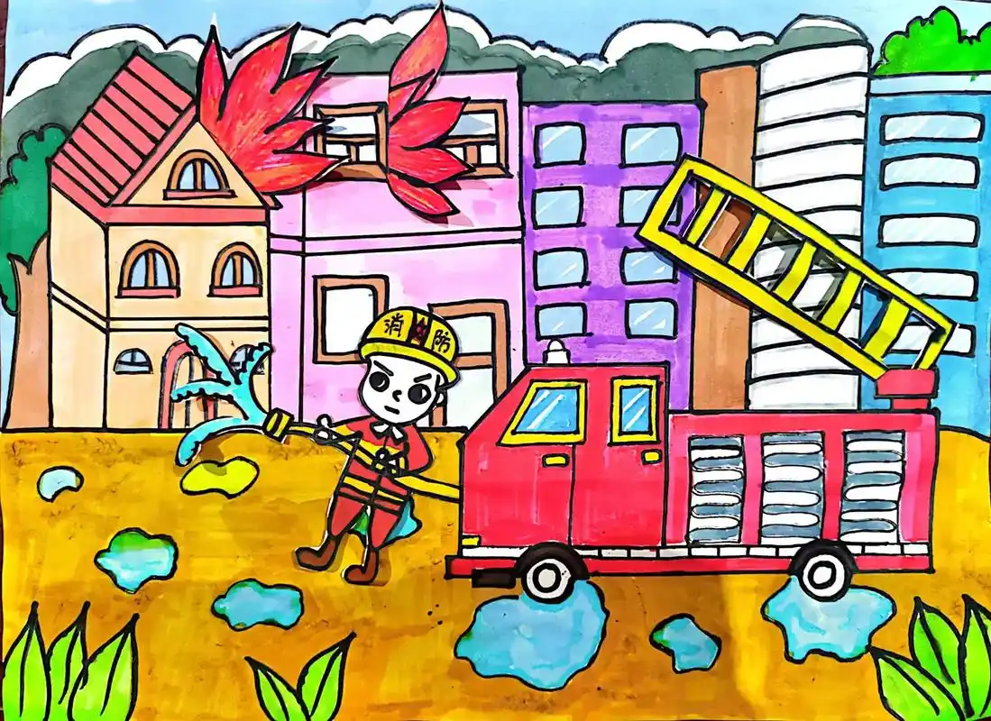 儿童画消防安全主题绘画 要开学了,是不是老师又布置作业了,各位宝妈