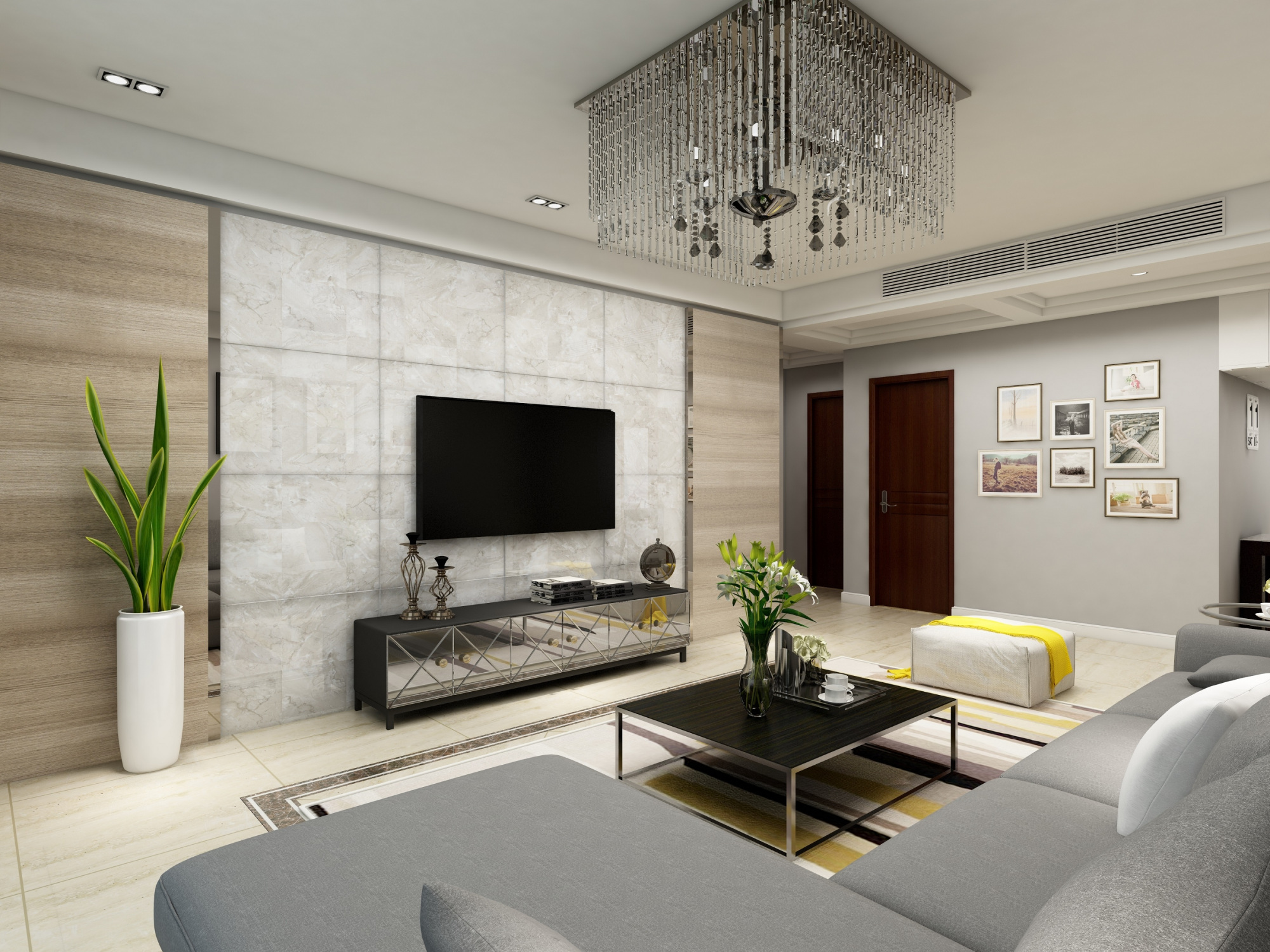 现代简约风格客厅微晶石电视背景墙装修效果图