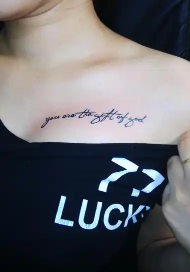 女孩胸前字母纹身图案