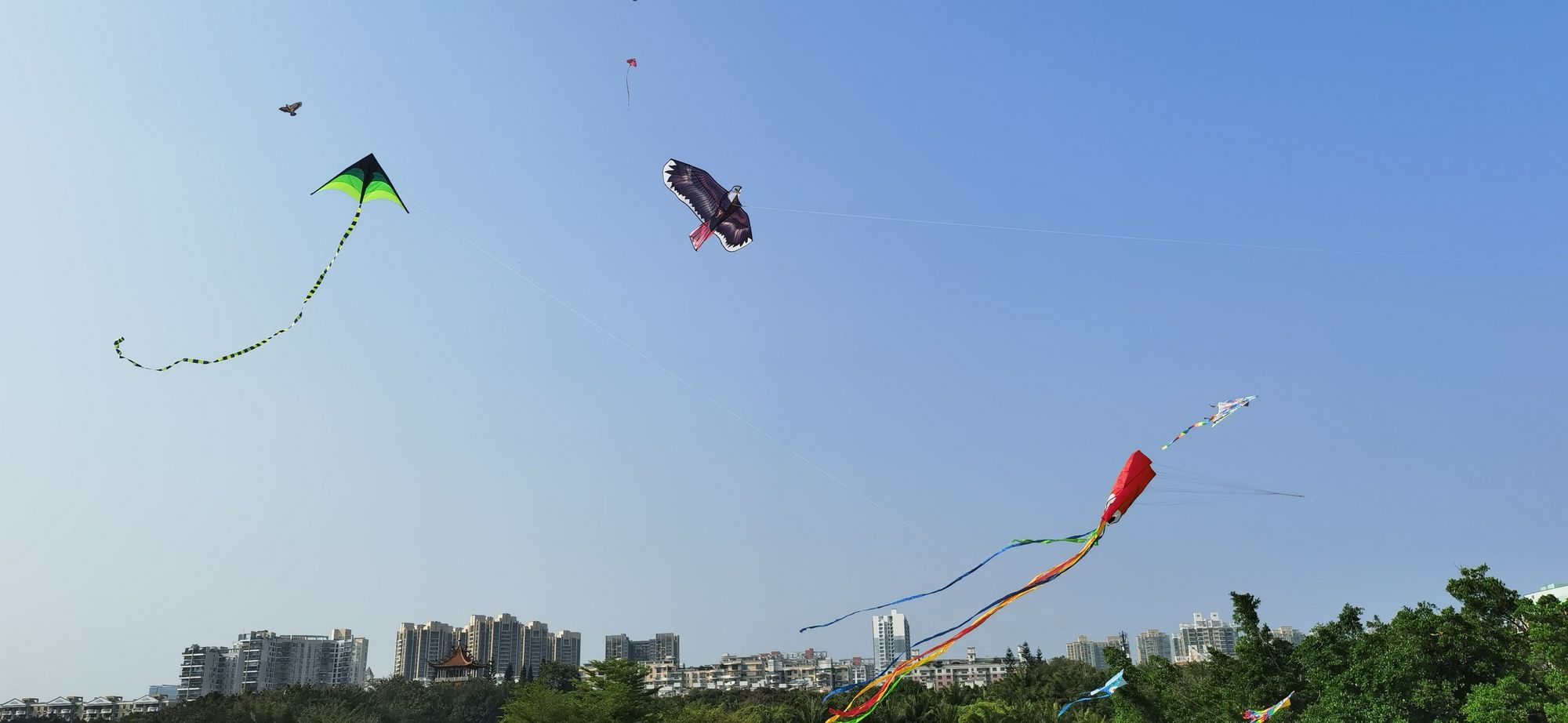 红寺堡人工湖上空飘起了七彩风筝真的好美