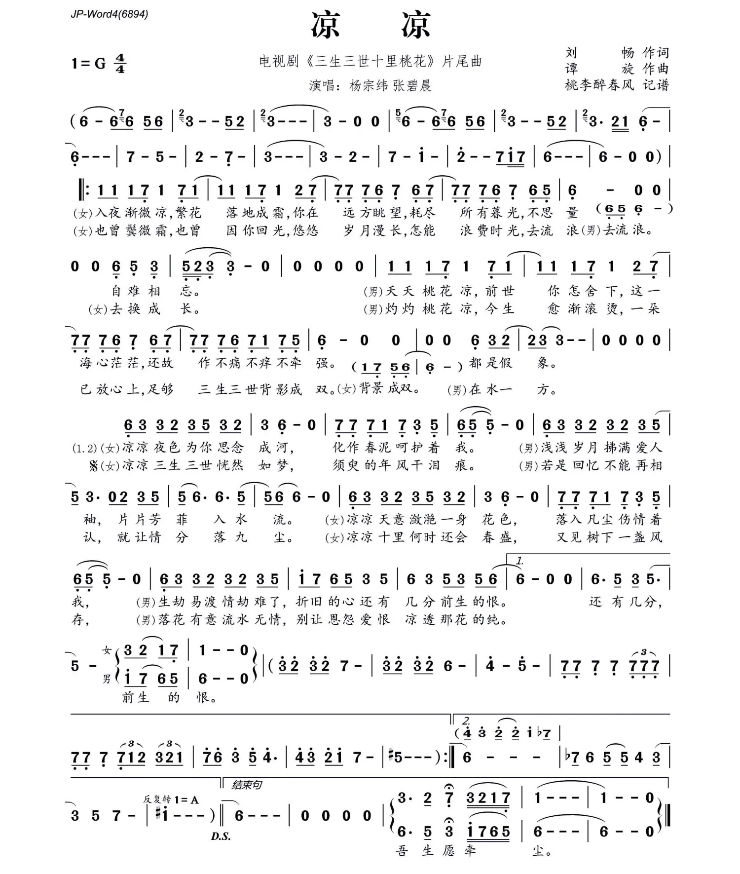 凉凉简谱-杨宗纬演唱-刘畅/谭旋词曲1