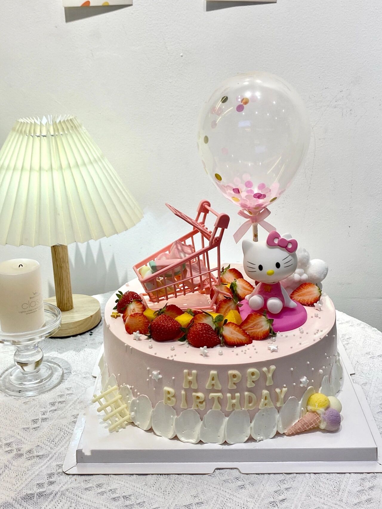 hellokitty生日蛋糕/女孩水果生日蛋糕 草莓棉花糖粉粉嫩嫩的颜色小