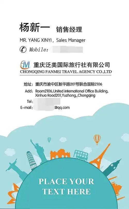 旅游类公司代表名片