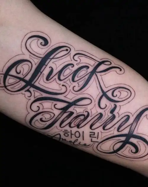 上海由龙纹身分享小手臂花体字纹身图案