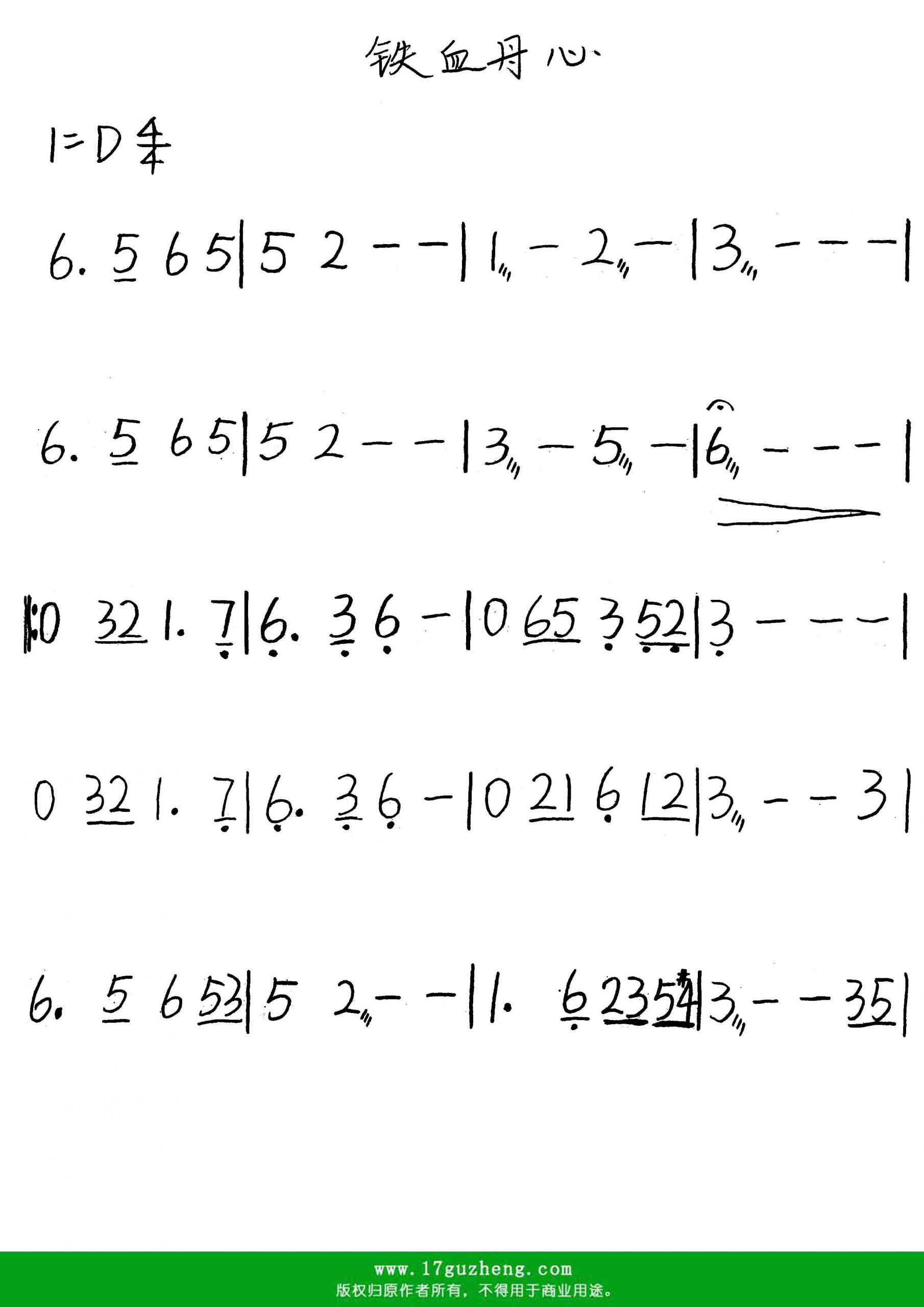 《铁血丹心》古筝曲谱 《铁血丹心》g调和d调的谱子(简版)