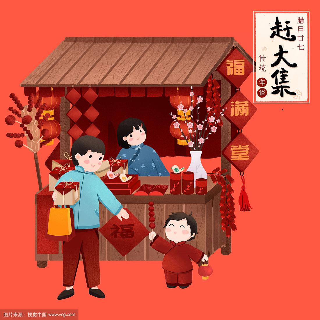 农历新年习俗之办年货买糖葫芦免