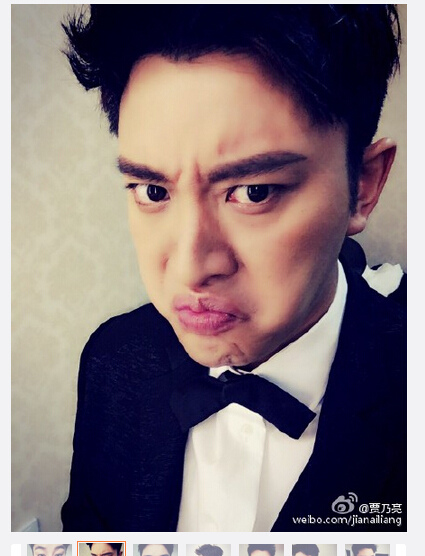 照片中,贾乃亮时而噘嘴怒目而视,时而翻白眼搞怪,造型十分逗趣.
