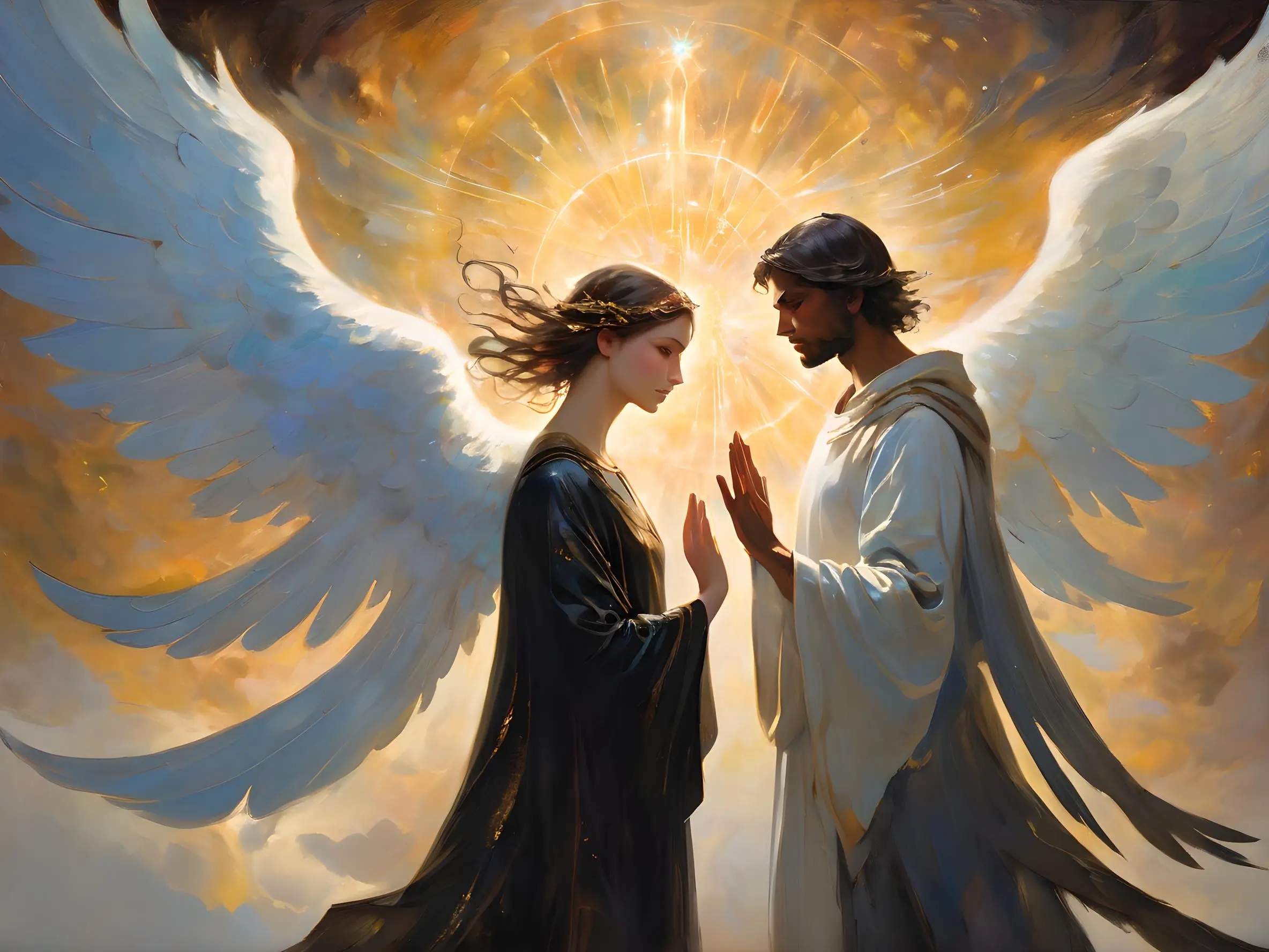 "ai绘画:天使与恶魔的情感对白"_地狱_人性_天堂