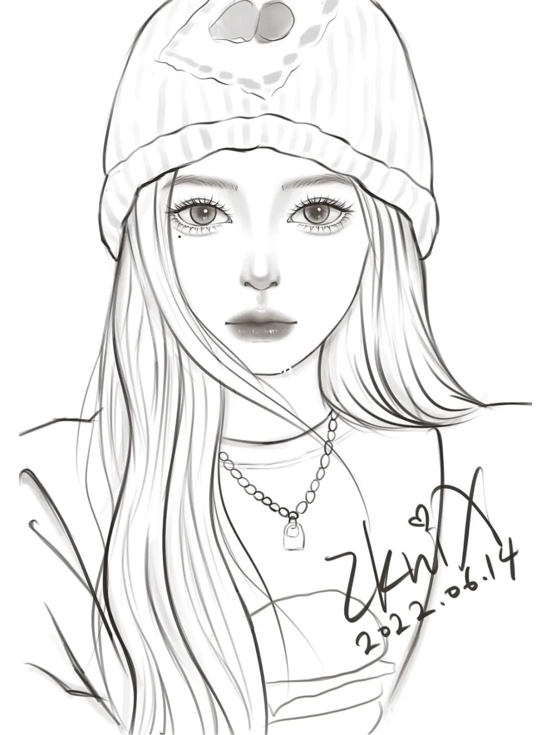 166466正面女生线稿速写头像打卡任务