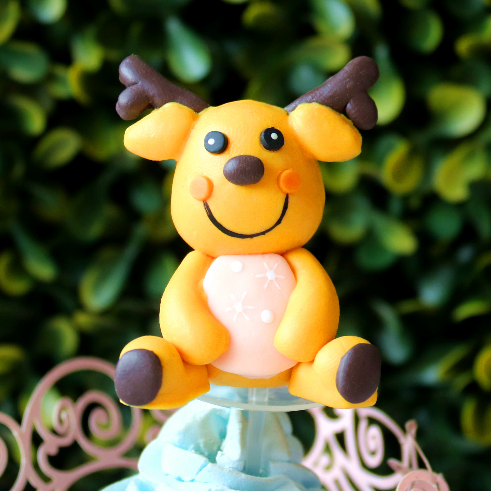 q可爱小鹿软陶圣诞插件圣诞插牌圣诞麋鹿圣诞节立体装饰圣诞鹿