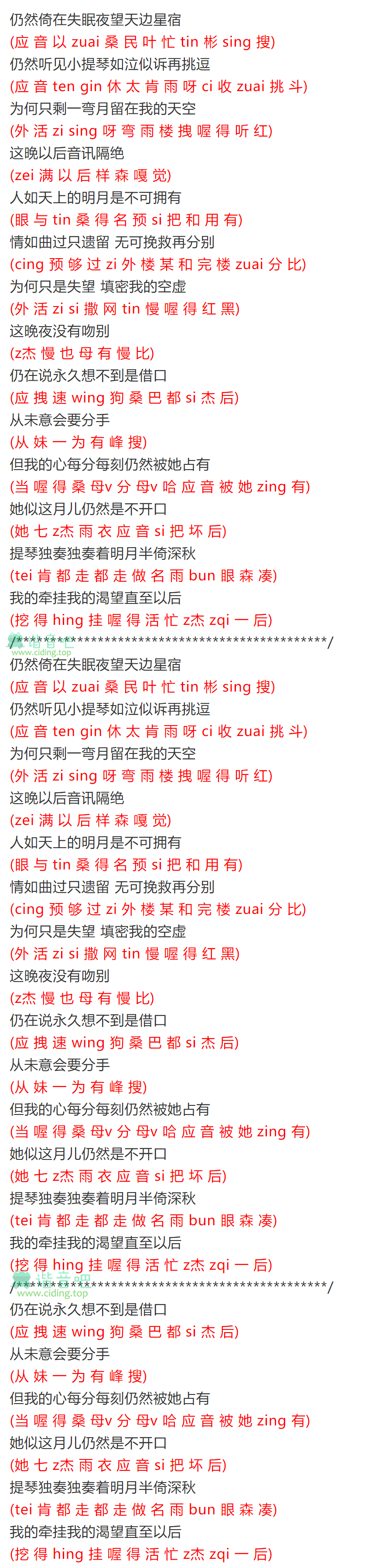 月半小夜曲 粤语歌谐音