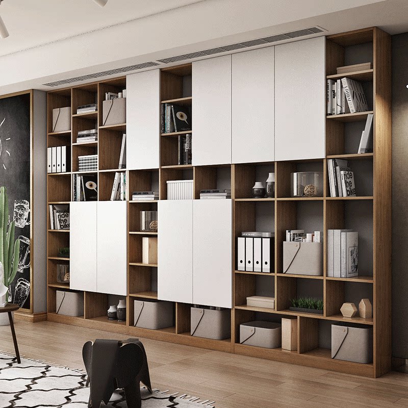 北欧整面墙大书柜到顶 定制客厅背景墙落地展示柜陈列柜置物架