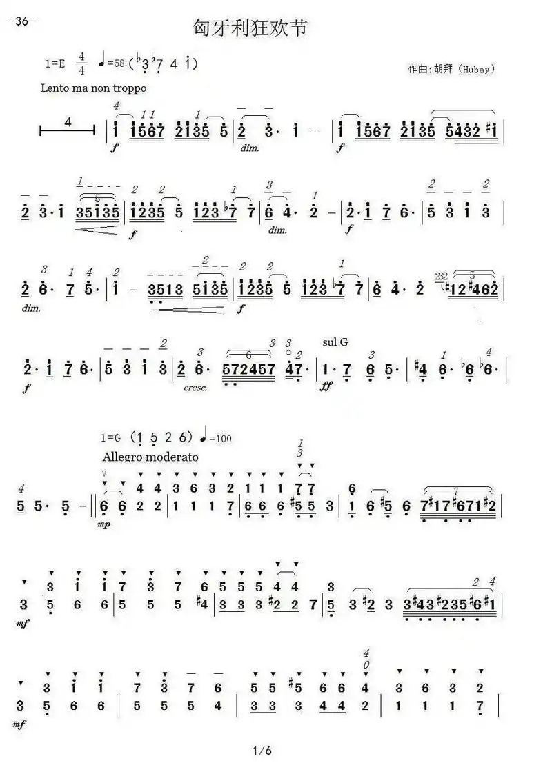 小提琴曲匈牙利狂欢节简谱#小提琴简谱 - 抖音