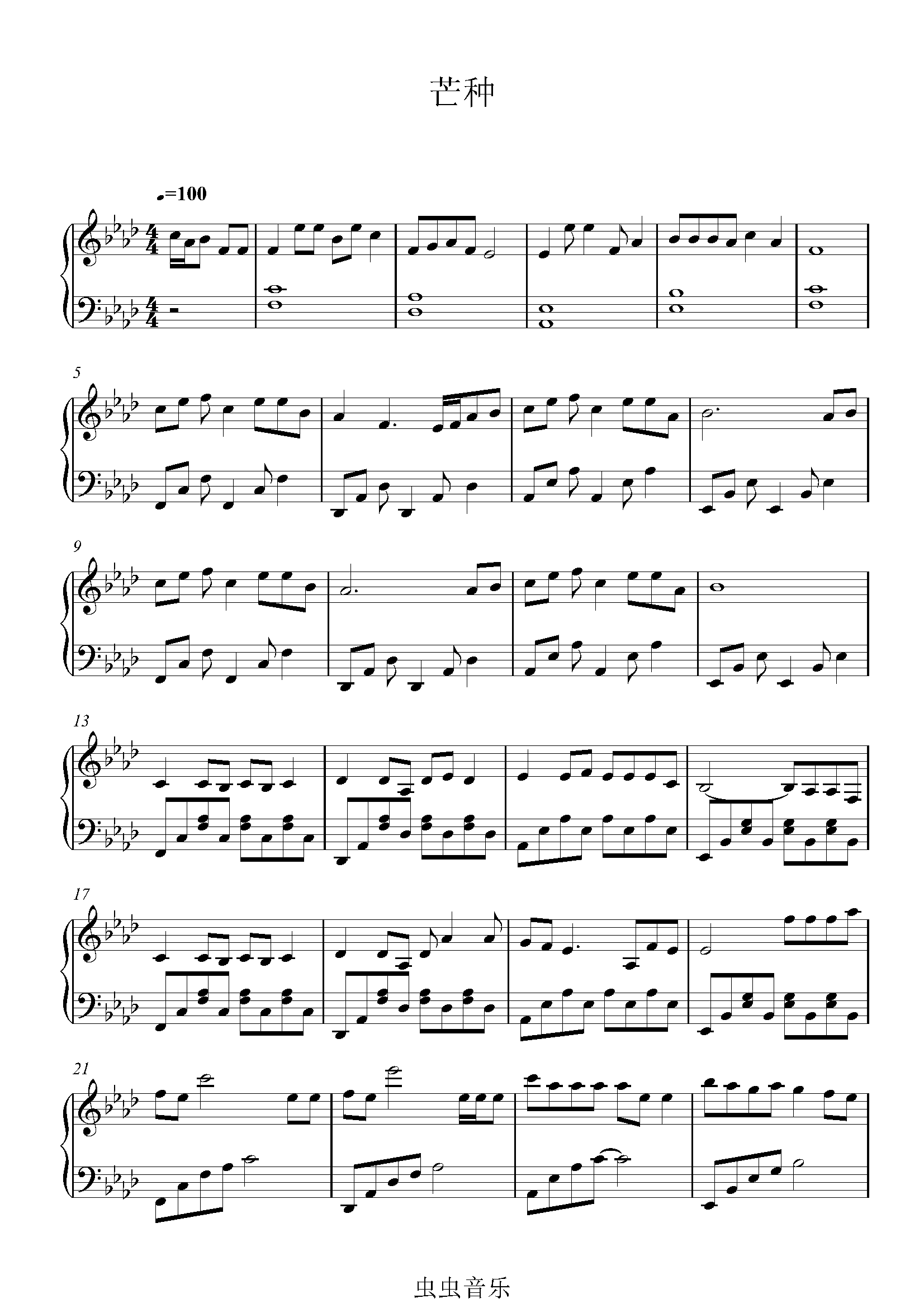 芒种钢琴谱-佛系编曲号-虫虫钢琴