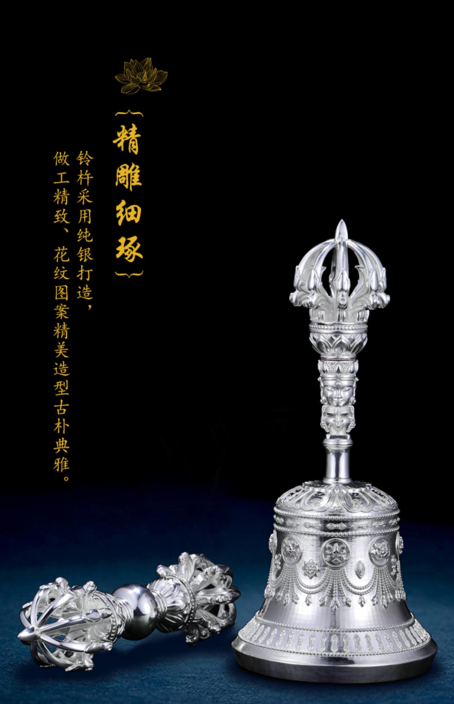 藏传s925纯银金刚铃杵五股杵铃铛密宗法器供具纯银镀金金刚杵 纯银