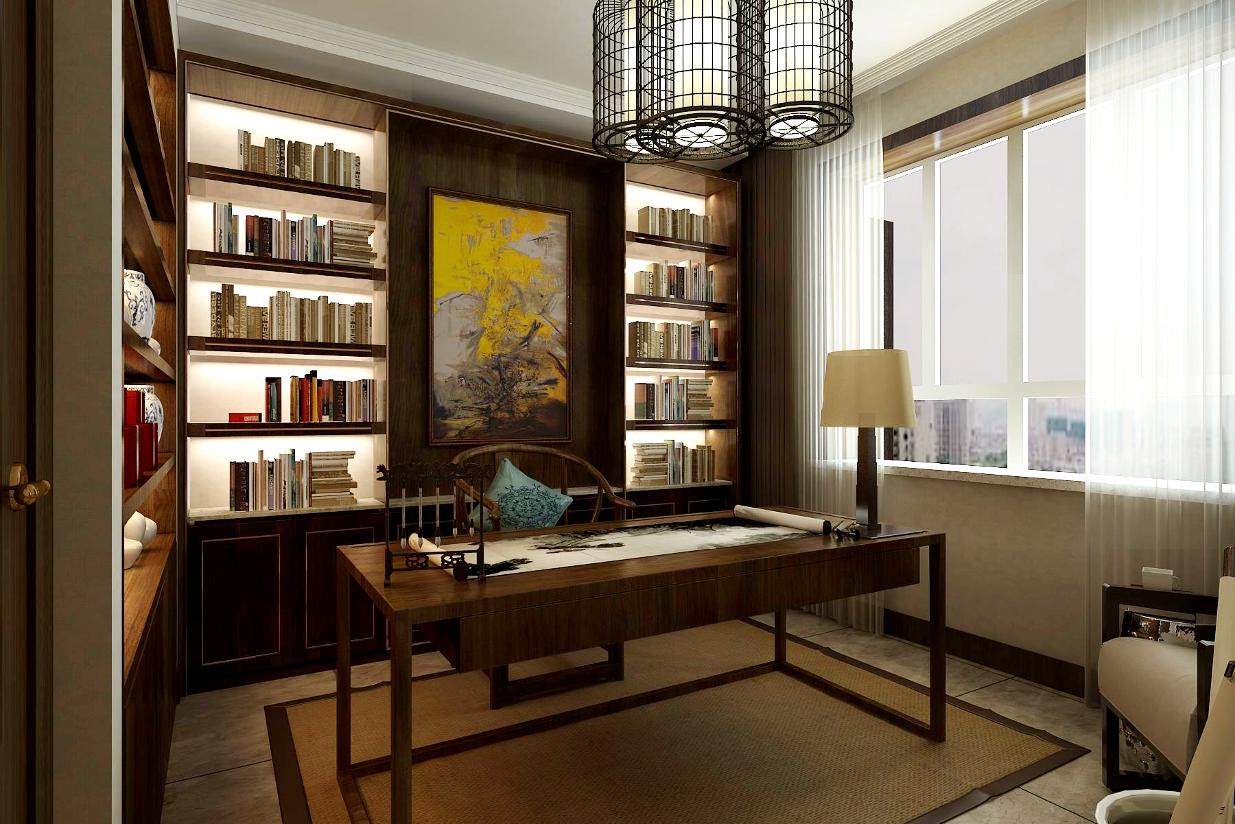 书房背景柜虚实结合,干净而又宁静致远.