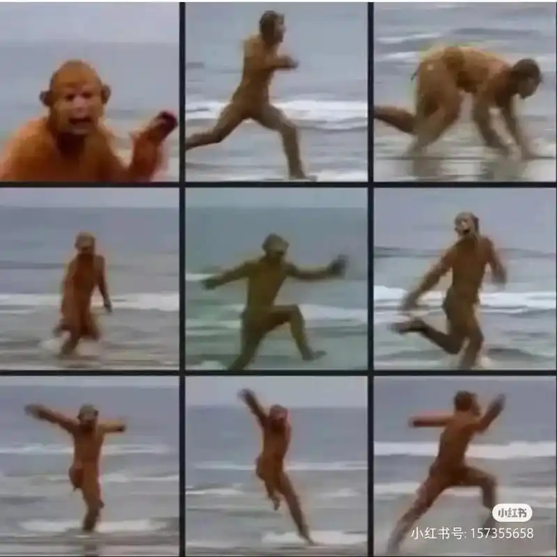 孙悟空海边奔跑#阳光沙滩海浪 @.唐不苦 显眼包和显眼包的 - 抖音