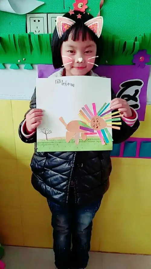 大一班手工课《戴假发的狮子》