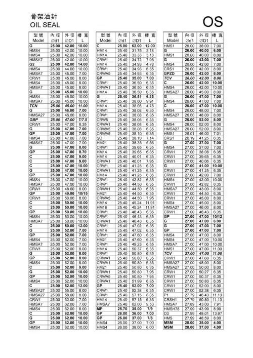 骨架油封规格表2
