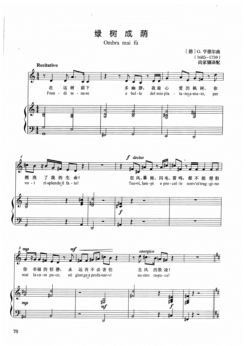 绿树成荫(ombra mai fu) 亨德尔 原版 正谱 五线谱 钢琴谱 高考声乐谱