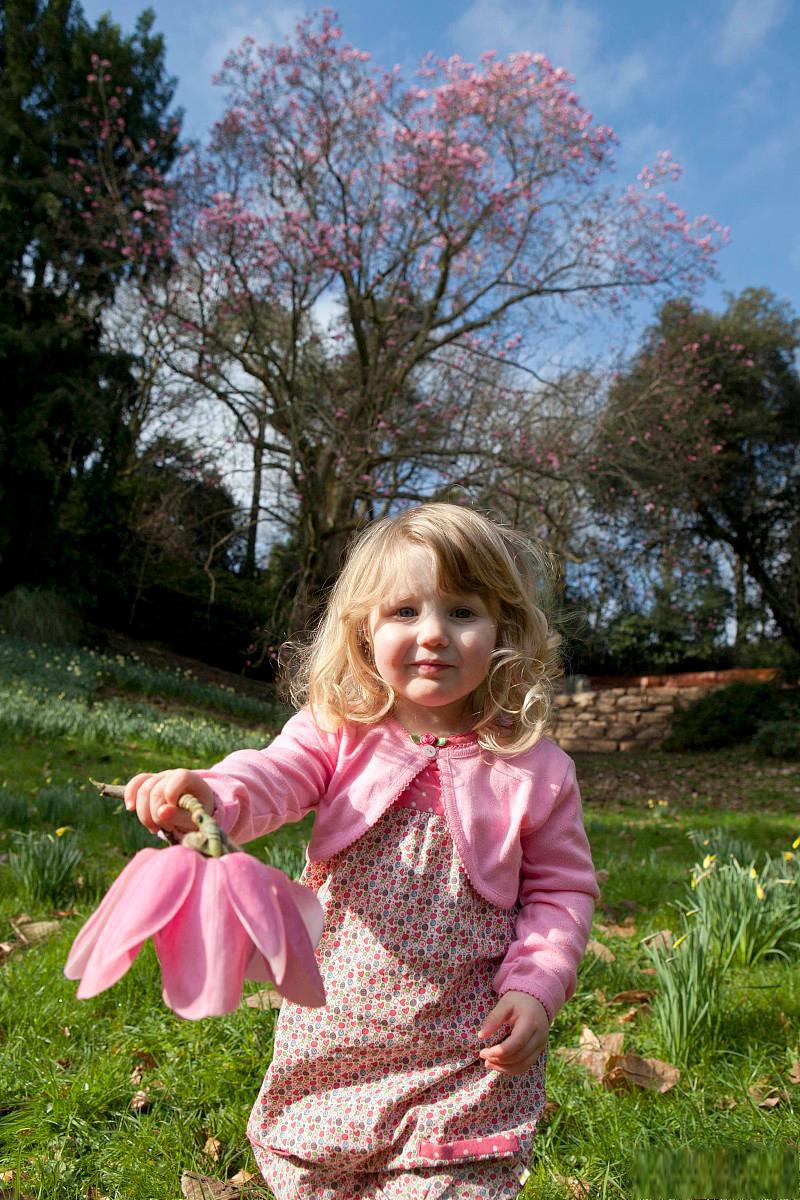 春天花园里可爱的小女孩裙子