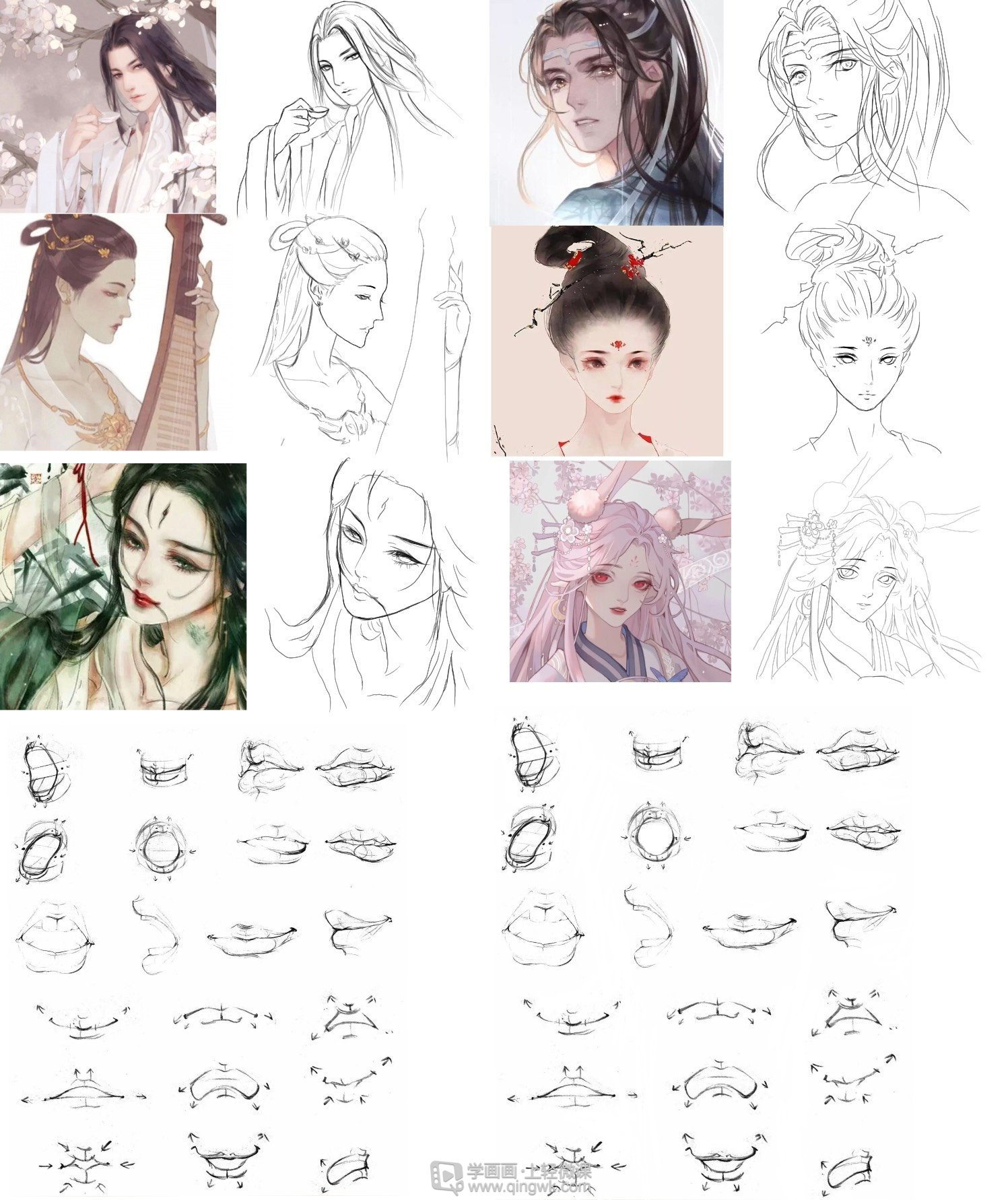 五 画出上嘴唇的形状,似两座小山,注意要对称.