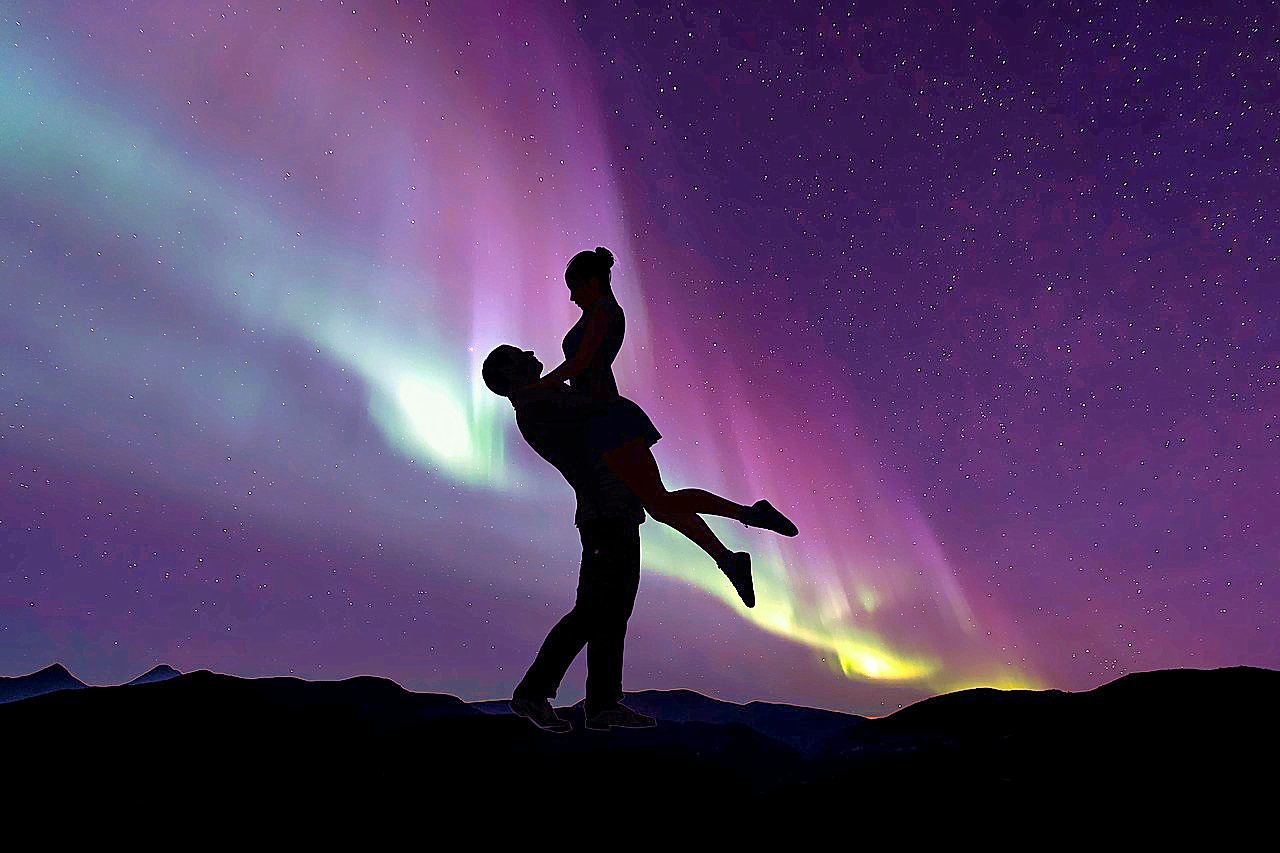 黄昏下的幸福恋人