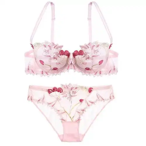 夏季内衣刺绣蕾丝透视明性感诱惑超薄款文胸套装欧美网纱d杯显小