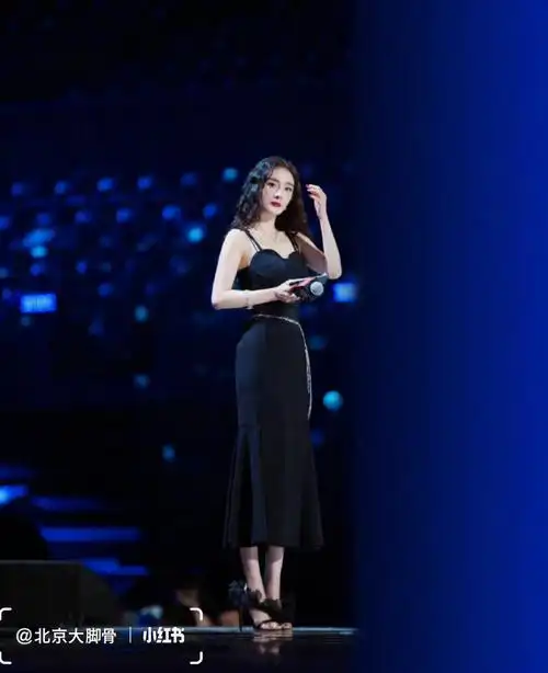 杨幂黑色吊带裙一字带高跟鞋造型