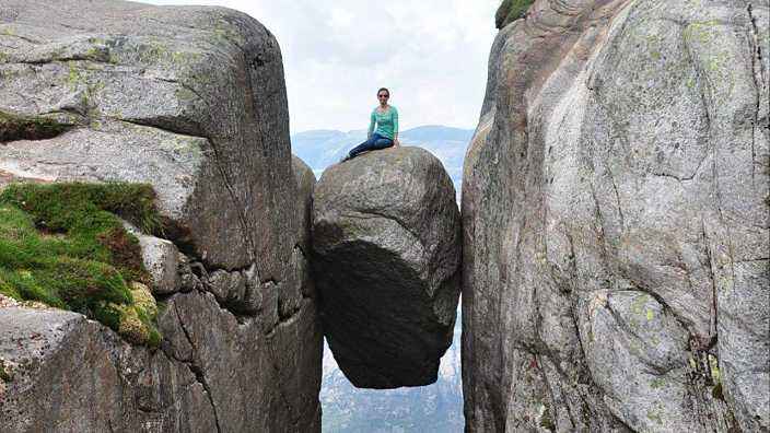 世界上最危险的石头悬在1000米的悬崖上你敢上去吗
