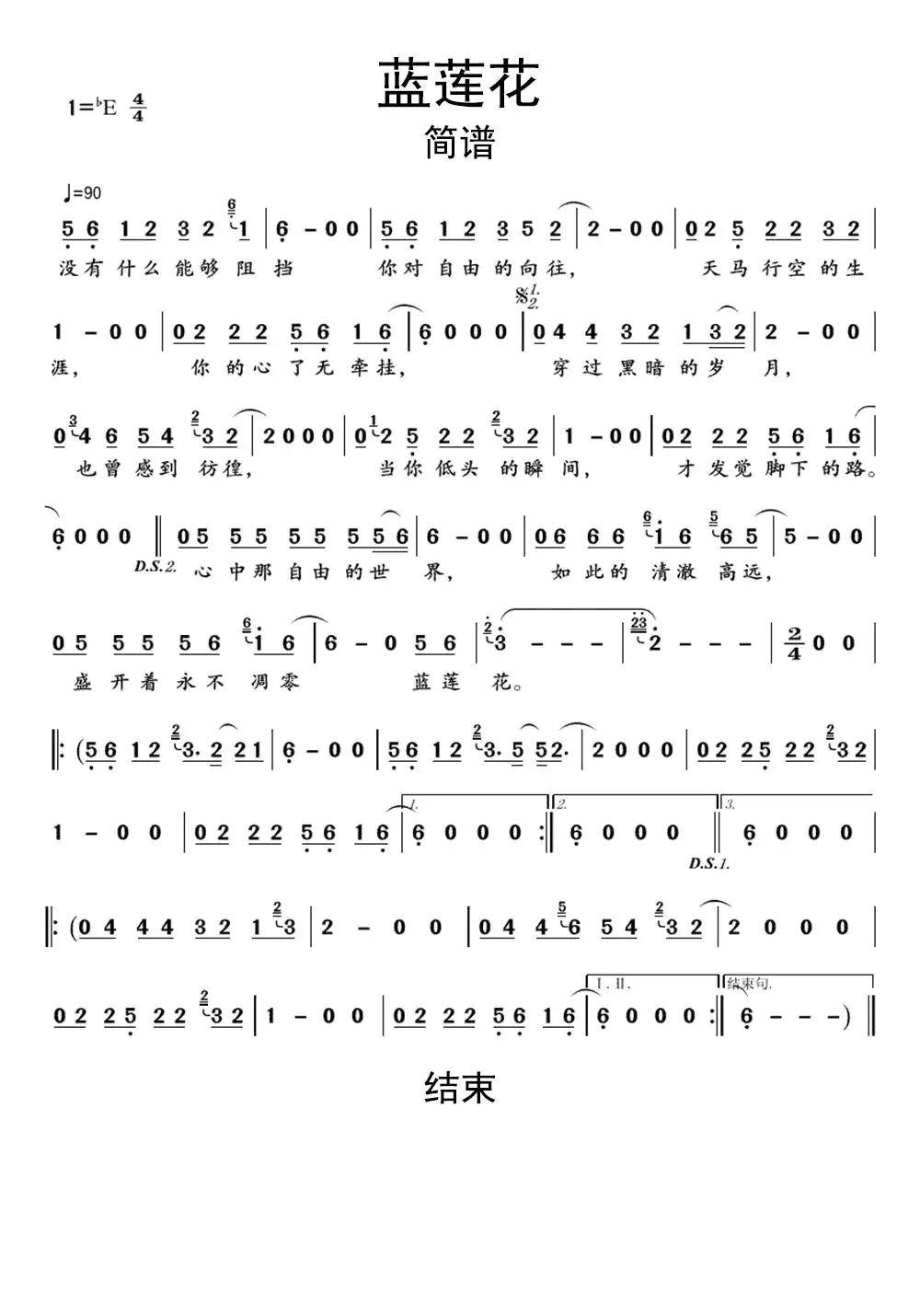 蓝莲花_歌谱简谱_哆来咪123曲谱网