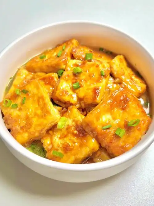 食材:豆腐一块做法:豆腐切块,起锅烧油,豆腐煎至两面金黄,倒入料汁翻