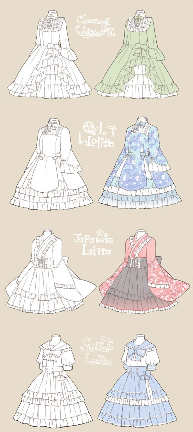 手绘参考# lolita动漫裙子样式绘画参考,每种都美美哒,转需收藏吧!