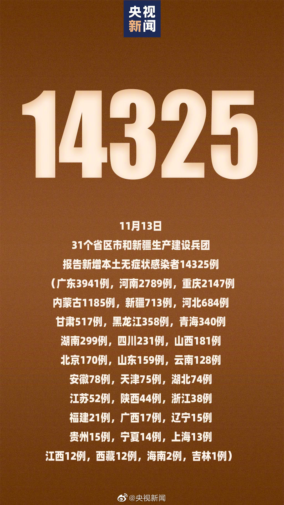 全国疫情最新消息11月13日新增本土确诊1747例本土无症状14325例