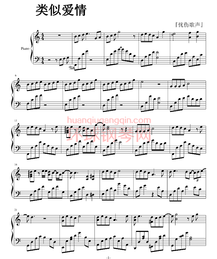 类似爱情-萧亚轩钢琴谱-环球钢琴网
