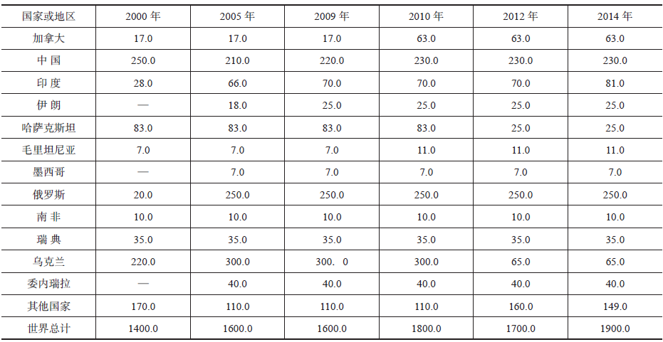 《矿产品概要》公布的数据,截至2014年底全球铁矿矿石查明储 量为1900