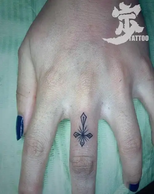 十字架纹身图片_手部点刺图腾纹身图案