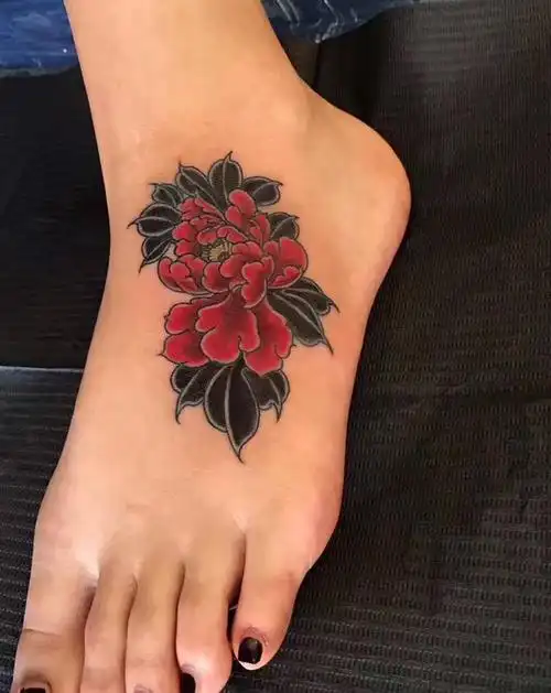 脚背牡丹纹身图片_脚部腿部新传统new school牡丹纹身图案
