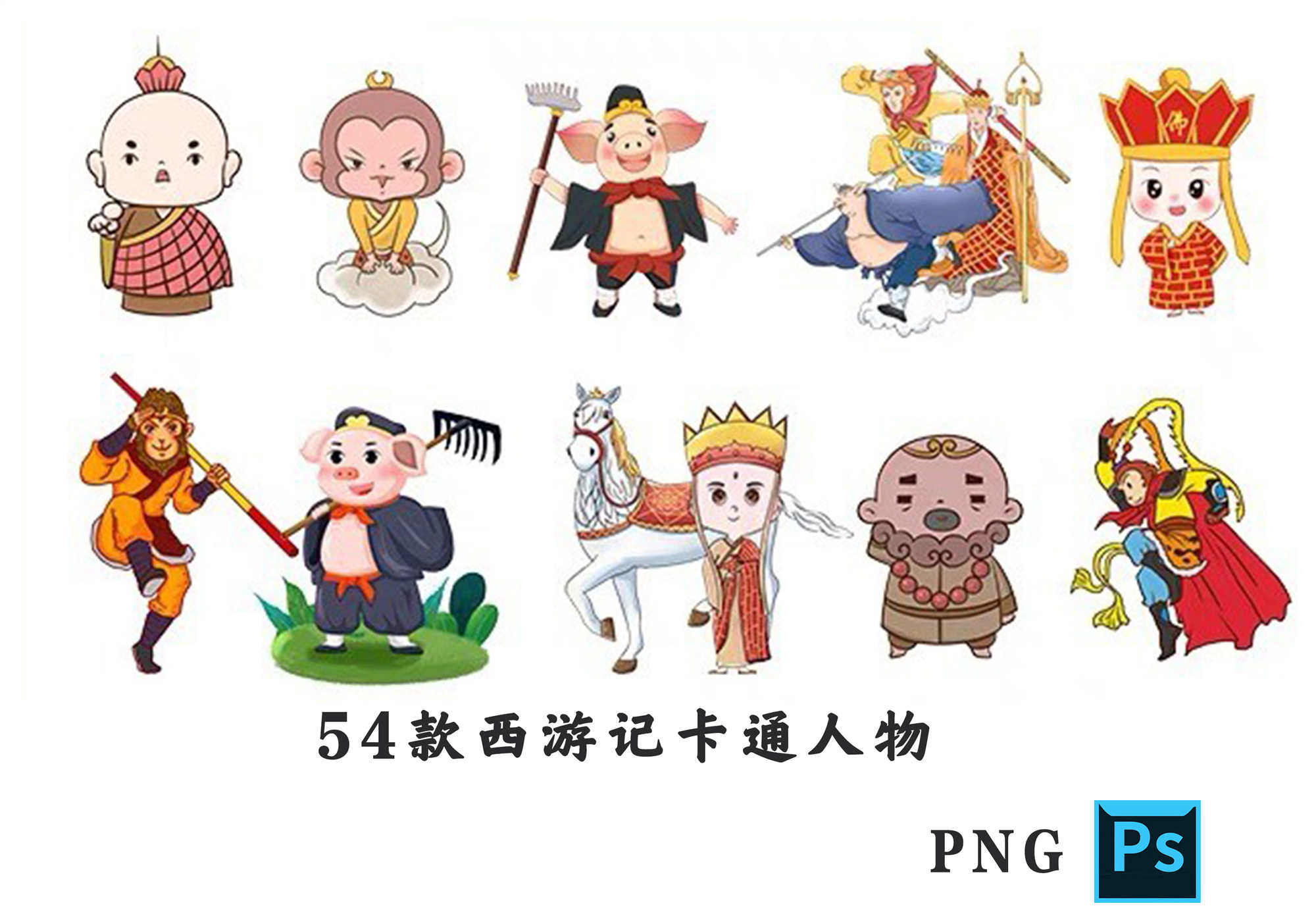 西游记卡通唐僧孙悟空猪八戒沙和尚角色人物形象高清免抠素材