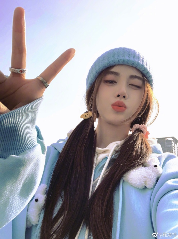 鞠婧祎日常少女心的一面,双马尾辫真的活力满满,搭配休闲风格