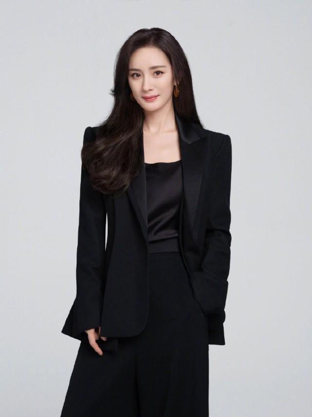 杨幂一袭黑色西装套装简约优雅温柔知性