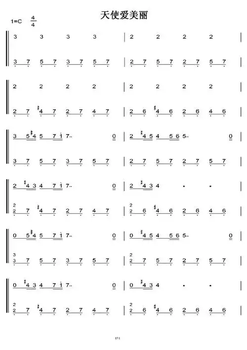 天使爱美丽 c调 初学者简易版 钢五双手简谱 钢琴谱