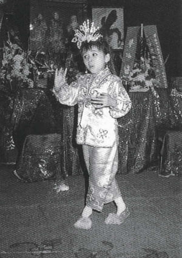 这是梅艳芳小时候粤剧的扮相,虽然小小年纪看起来很稚嫩,但动作已经很