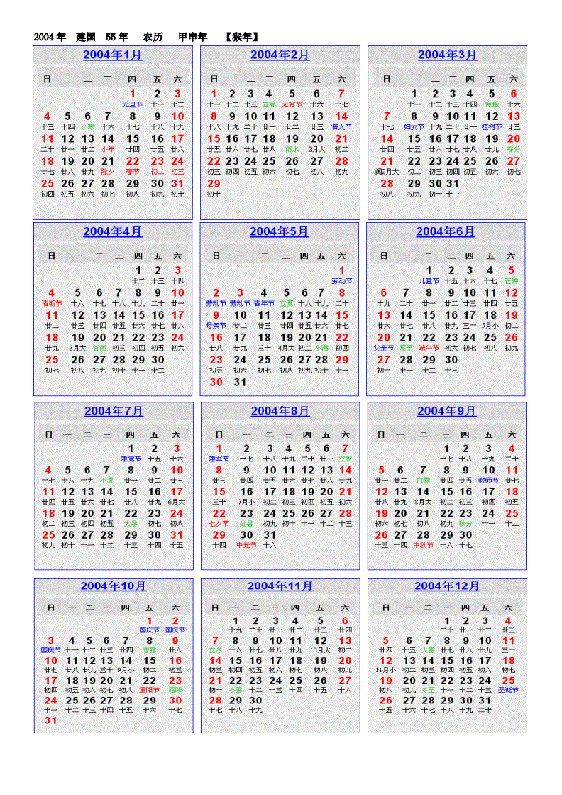2000年—215年日历a4打印版带农历节假日.doc