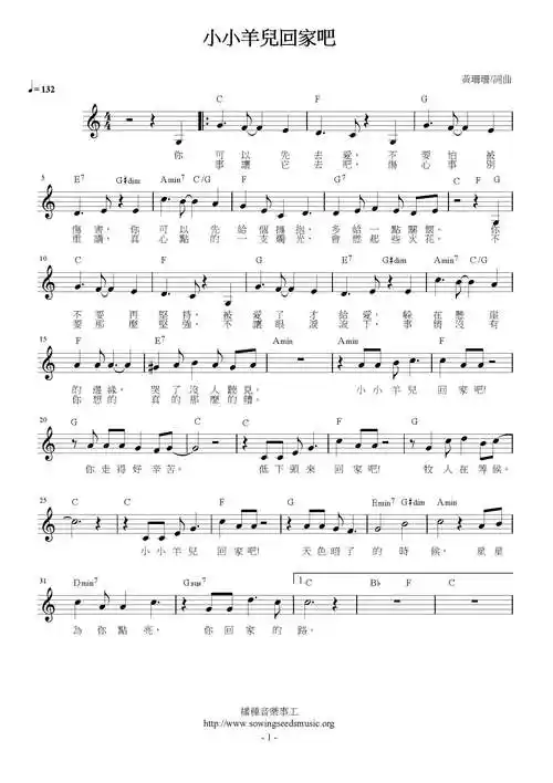 小小羊儿要回家_小小羊儿要回家简谱_小小羊儿要回家吉他谱_钢琴谱-查